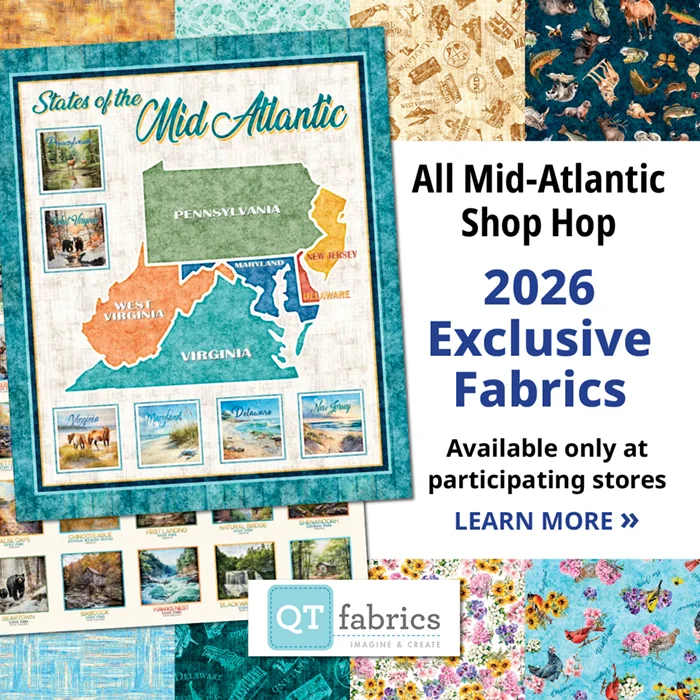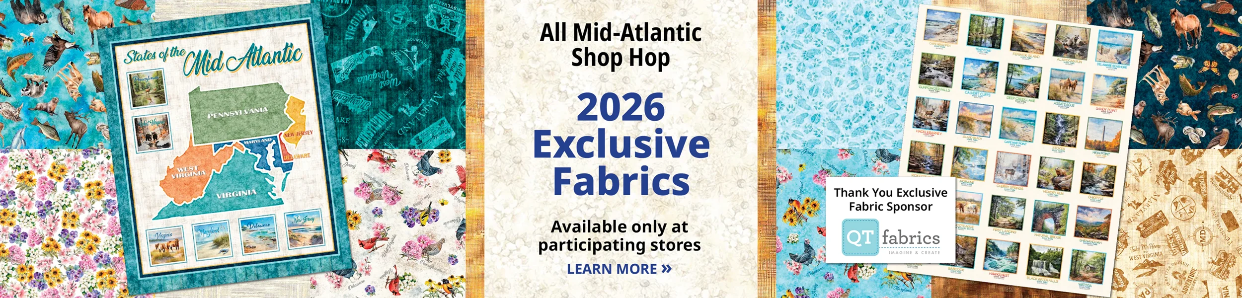 We are streamlining the All Mid-Atlantic Shop Hop so you can focus on Delaware, Maryland, New Jersey, and Pennsylvania. Don’t worry, we’re not forgetting Virginia and West Virginia. They will be joining North Carolina to form the new All Blue Ridge Shop Hop (May 1 – June 30).